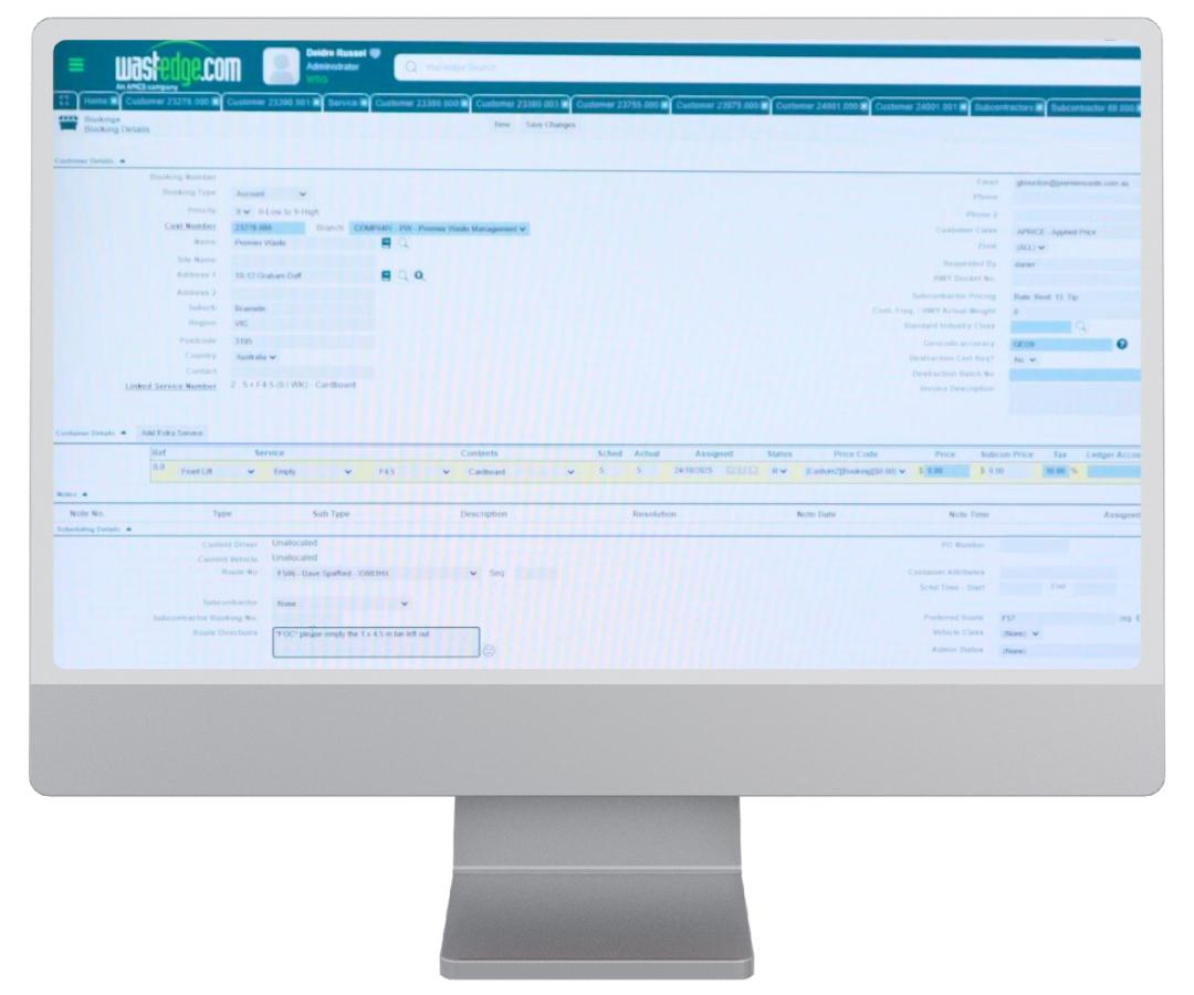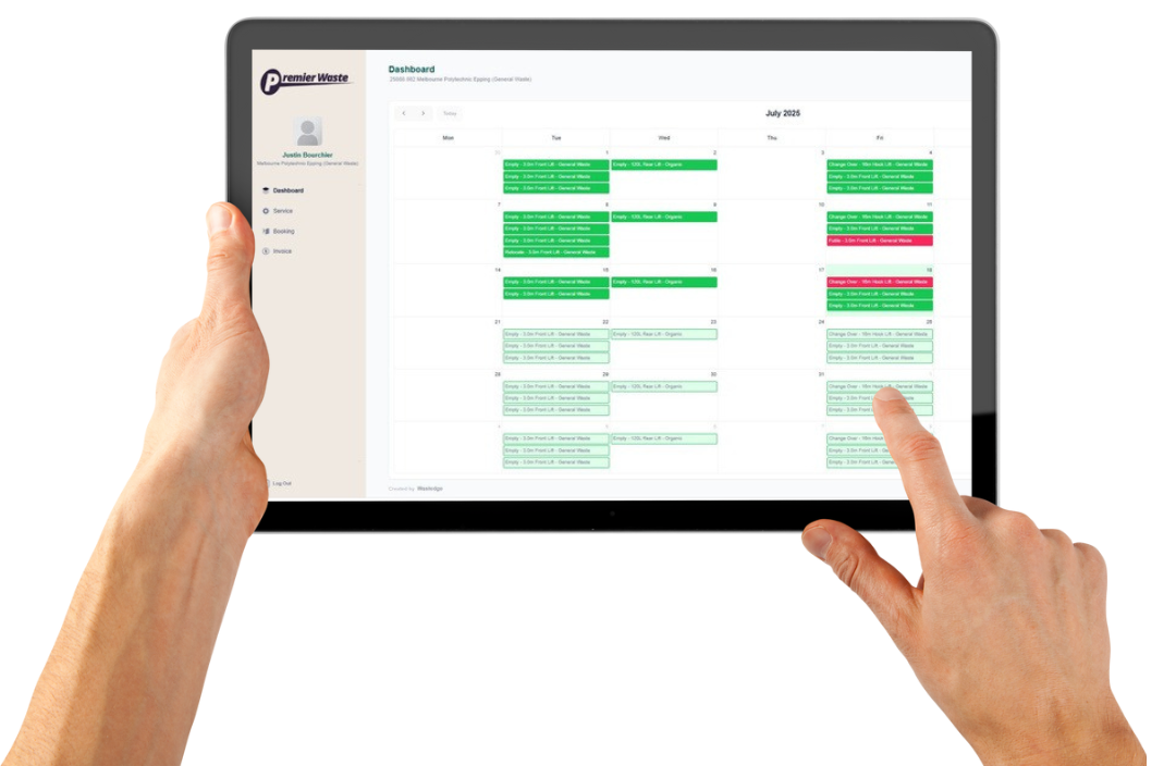 Premier Waste operates on Wastedge, a leading cloud-based business management platform that provides complete visibility and accountability across all waste services. Every collection is tracked in real time with GPS data, timestamped photo verification, and instant updates, ensuring that no service is missed and any issues (such as access problems or overfilled bins) are immediately documented. This system allows for seamless communication between drivers, operations, and clients, delivering accuracy, reliability, and full service transparency.